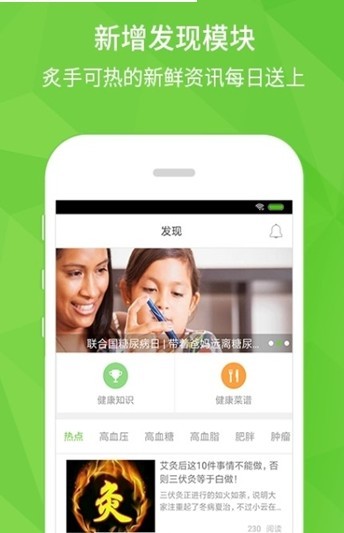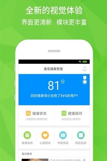 美康健管是一款主打健康管理的app,通过软件可以连接血压计、血糖仪、体脂仪等健康设备,帮助自己和家人采集健康数据,并且随时能在线查看数据。让你不需要出门就可以了解身体状况。提供饮食、运动健康方面的指导。里面还有很多健康资讯和养生常识,培养用户养成健康生活的习惯,如果遇到问题,还可以在线咨询。