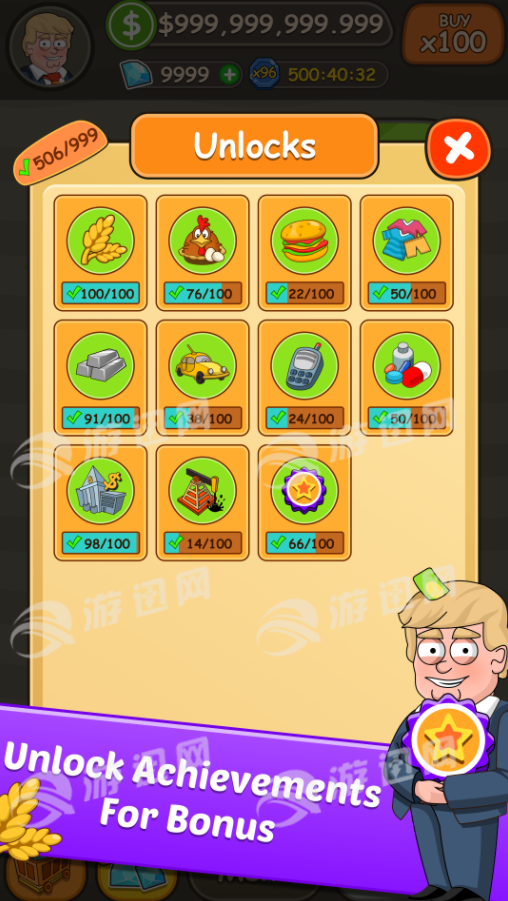 大资本家(The Big Capitalist)是一款恶搞美国总统川普的经营模拟向休闲游戏!川普在做总统之前可是企业大亨呢!你可以模拟他的经商之路,从一位无名小卒做到商界大佬,不断地积累自己的,投资更多的产业!
