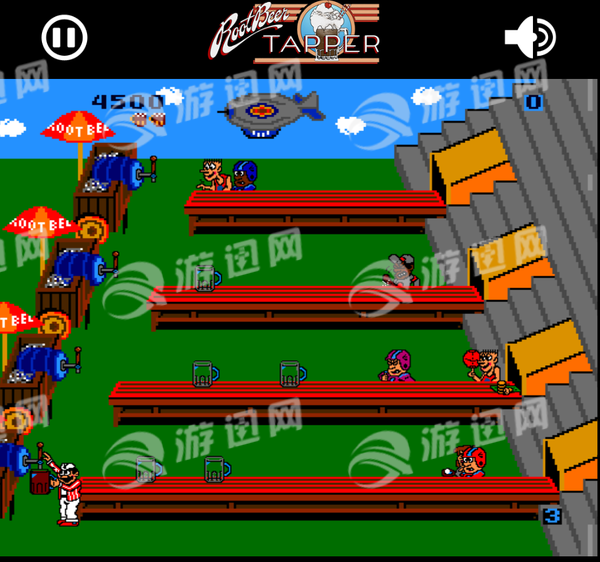 Root Beer Tapper是一款是一款玩法丰富且十分深受小伙伴们喜爱的益智休闲类游戏,Root Beer Tapper中采用了复古的游戏风格进行打造,能够带给玩家们儿时的童年回忆,而在操作上采用了简单的街机操作,能够帮助游戏玩家们轻松一键上手,在玩法上Root Beer Tapper采用了十分丰富的有趣游戏玩法,能够带给玩家们新颖的游戏体验,想要变身酒保来体验一番这款魔性的Root Beer Tapper游戏么,想成为一名合格的酒保么,那就赶紧点击一起畅玩一番吧。