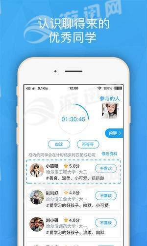 班外,这是款面向广大大学生量身打造的聊天交友平台,在这儿,你不仅可认识更多班级以外的人,也能寻找志同道合的朋友随时开黑、在线学习,支持线上互动、线下邀约。