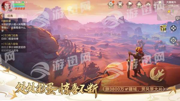 沙漠戈壁天外黄沙漫漫,世外桃源粉色花海盛放……不同的风俗地貌,给予着少侠强烈的视觉冲击力。网易自研Messiah引擎,融合独特的梦幻西游式国风美学,赋予了3800万平米大地独特的生命力。