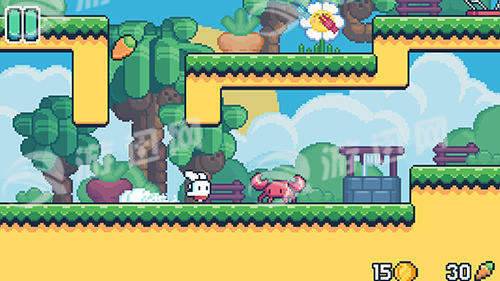 游戏主打可爱的像素风格,玩家可以控制卡哇伊的小兔子来跑酷和闯关冒险。