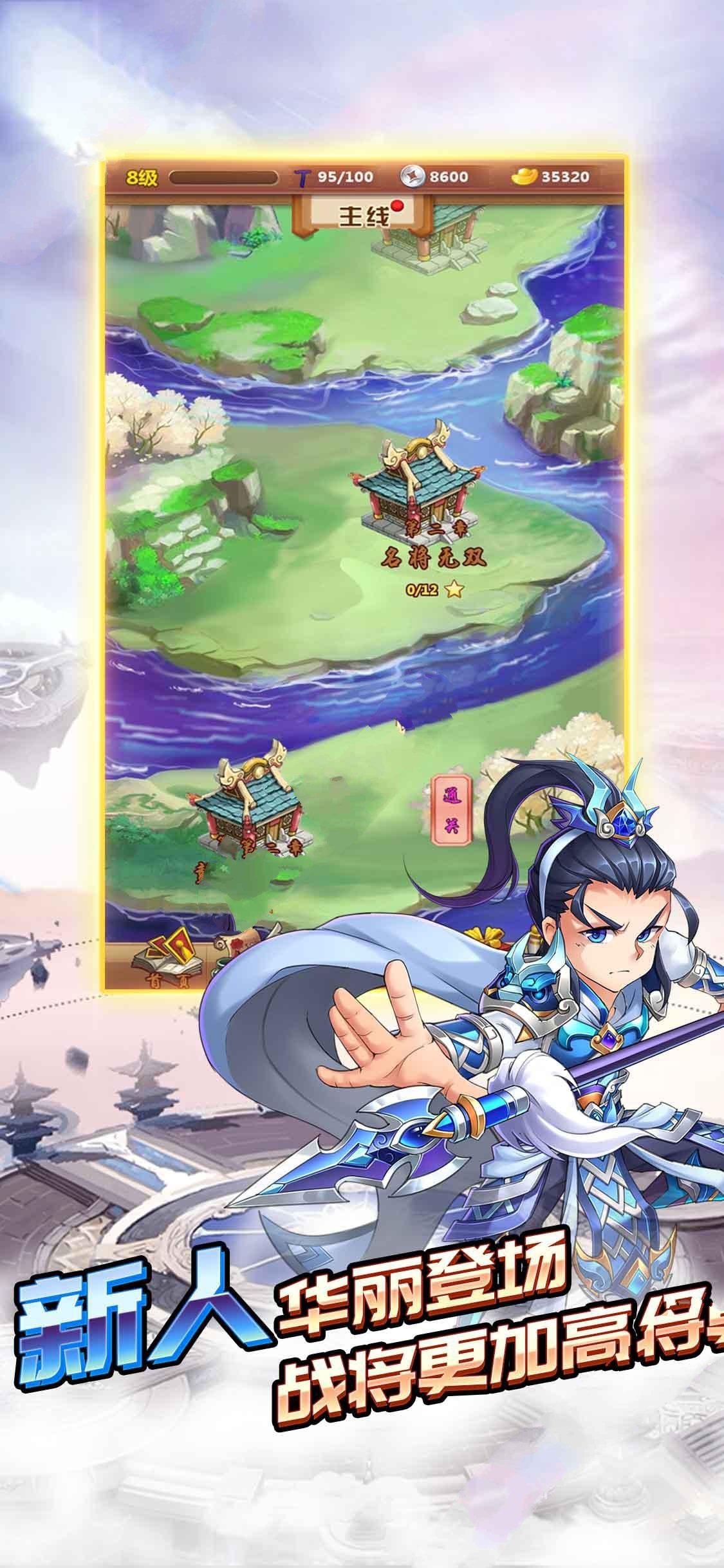 卡牌的三国玩法,武将需要相关的材料进行升级。玩家想要获得材料可以去副本关卡里面,关卡数量越大得到的奖励也就越丰富。新人教学非常的贴心,即时你是第一次玩相关的内容也可以很好的进行战斗。