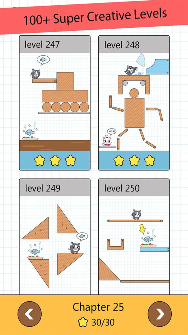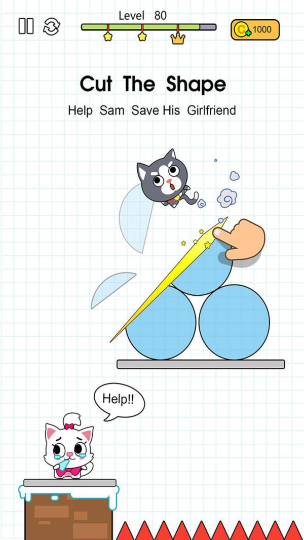 快乐小猫剪剪爱是一款冒险闯关的物理画线游戏,你需要在游戏中帮助一只可爱的小猫咪去拯救它的女友,你要做的就是通过物理画线的方式削减画 面中的障碍物,让小猫咪们可以有情人终成眷属!游戏设置了上百个关卡供玩家前来挑战,每一个关卡挑战成功后,你都能获得一定数额的金币奖励 ,金币可以用来兑换其它小动物的皮肤哟!