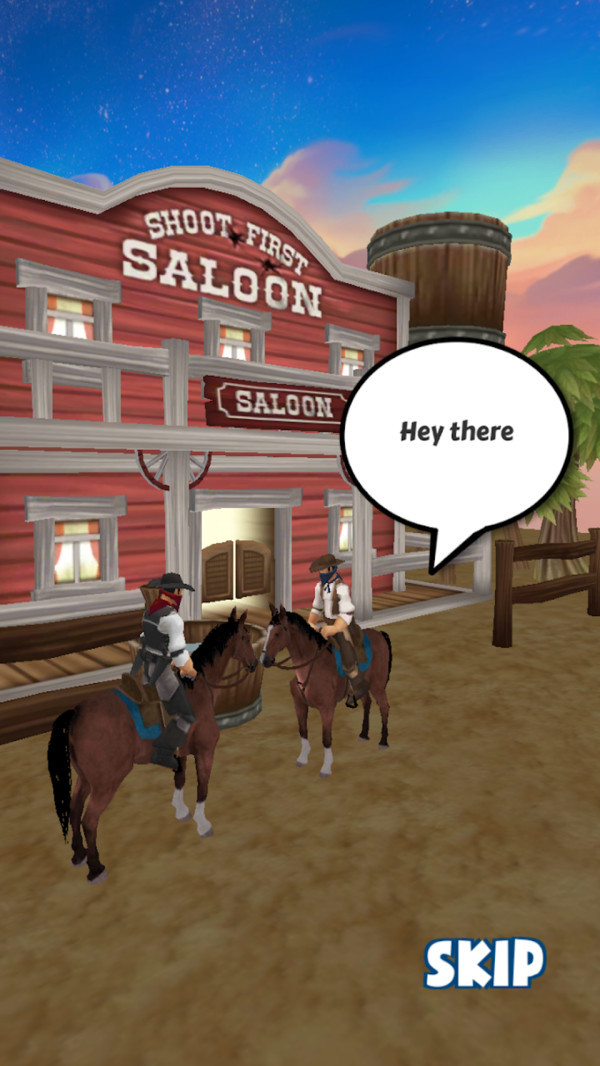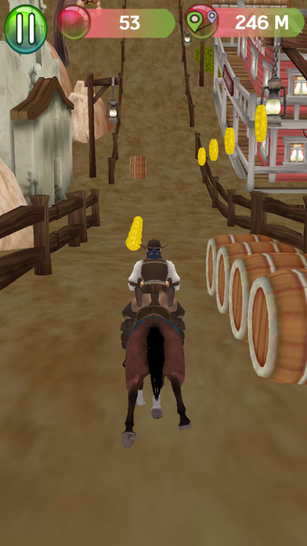 游戏采用了西部牛仔风格,在这里,你要骑马跑酷追逐抢劫犯。