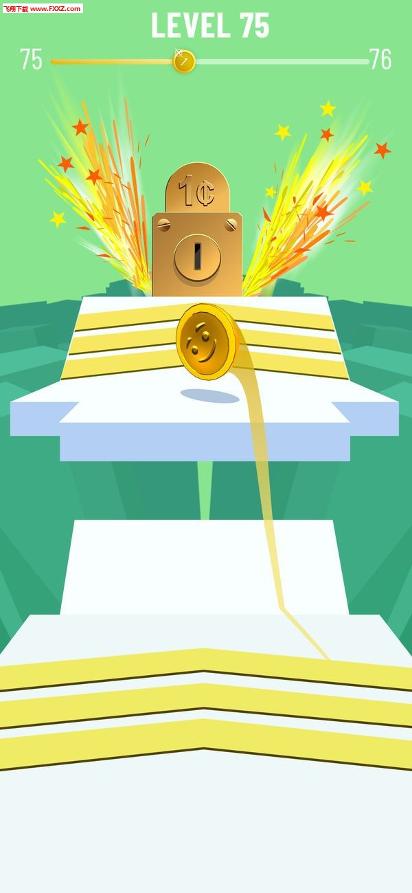 硬币冲刺是目前在抖音上比较火的一款竖版跑酷过关游戏。游戏名为硬币冲刺,顾名思义玩家在游戏中需要控制一枚硬币向前滚动进行过关。游戏的玩法很简单就是操纵硬币向前滚动就行了。在沿路有的时候会出现一些宝石玩家需要操纵硬币吸收这些宝石,在关卡结束之后你可以利用这些宝石来升级你的硬币。
