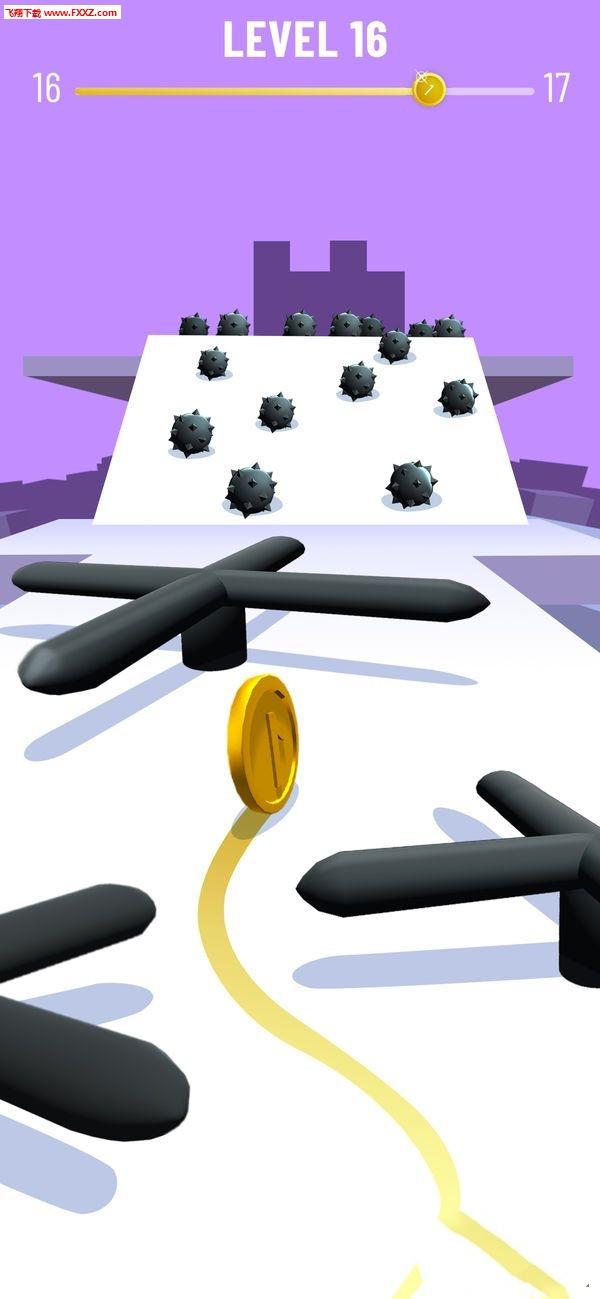 需要灵活的控制金币左右闪躲避开障碍危险,穿越重重阻碍到达终点;