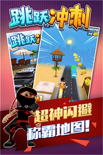 跳跃冲刺是一款好玩的跑酷类游戏。全球超多玩家都在玩。可是一款可以随时随地玩的小游戏。玩家不需要花费专门的时间去玩。游戏画面是卡通风格。游戏的跑酷场景多样,玩家可以自由选择,城市的背景进行跑酷,游戏自由度很高。游戏模式也可以自由选择。体验突破自我的快感 竭尽全力冲刺! 躲避迎面而来的火车! 是一款休闲简单的小游戏。