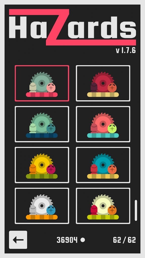 Hazards是一款齿轮冒险题材的趣味小游戏。在游戏中你可以先选择一个小动物在游戏中进行闯关,每一个关卡中都拥有非常多的齿轮,并且在里面隐藏中许多的机关,所以你不要轻易的去触摸关卡中的机关,否则会一不注意就会被机关给淘汰掉,画面十分简洁,用不同的游戏模式,玩家可以选择不同的动物来帮助自己闯关。