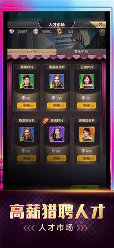 挑战关卡,商业谈判,收购各公司,让各巨头每天向你汇报工作和业绩。随着公司规模提升,自动解锁招纳更多的优秀员工前来效力。