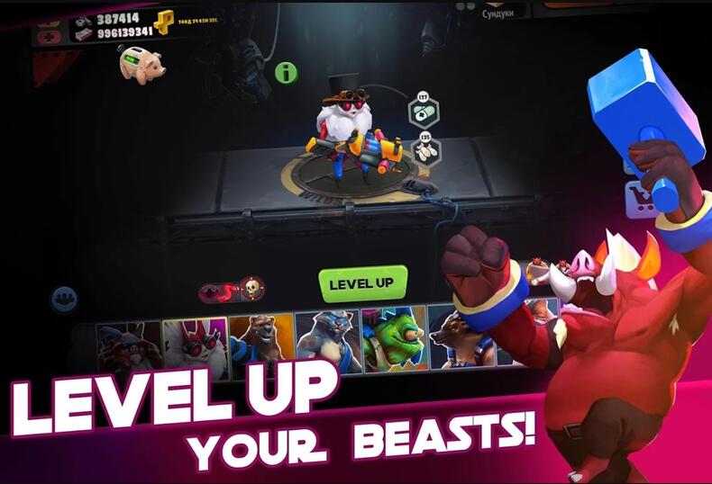 能力。每个英雄都有自己的特点来帮助你在战场上占据主导地位。以下是几个例子:当浣熊击中0时,浣熊不会死亡,只是跳出它被摧毁的机器人套装。变色龙融入周围环境,恢复健康,甚至可以穿越敌人。