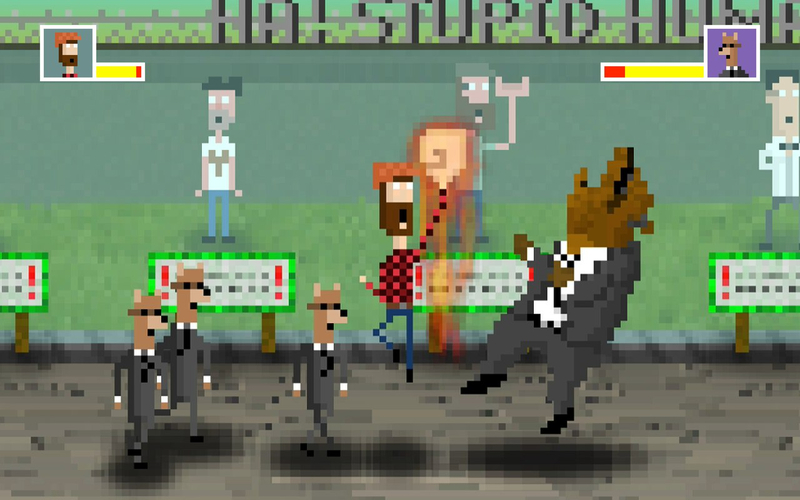游戏使用了复古像素画风,音乐也配合得十分带感。游戏的操作简单并有连击积分,拥有动作游戏最重要的打击感。这款像素风画面略显粗糙的游戏,它在 Kickstarter 上募资时,达到了其原定目标的两倍,可见其受欢迎程度。游戏的主题非常奇葩,包括了时下流行的穿越、外星人、大阴谋等元素。