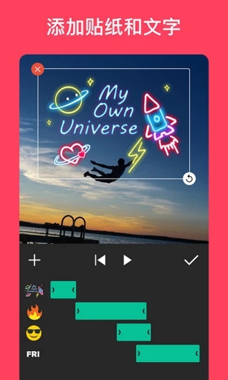 3.随着时间线功能,轻松同步文字和表情符号视频。