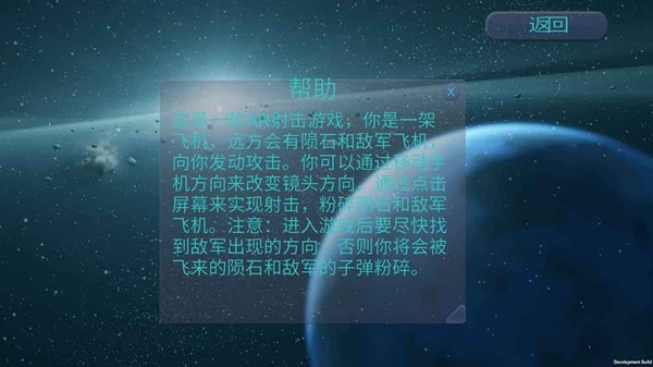 ar射击是一款AR第一人称射击手游,游戏以太空射击为主题,射击各种陨石,还有强大的敌对飞船,搭配现实背景,体验视觉冲击,快来下载吧!