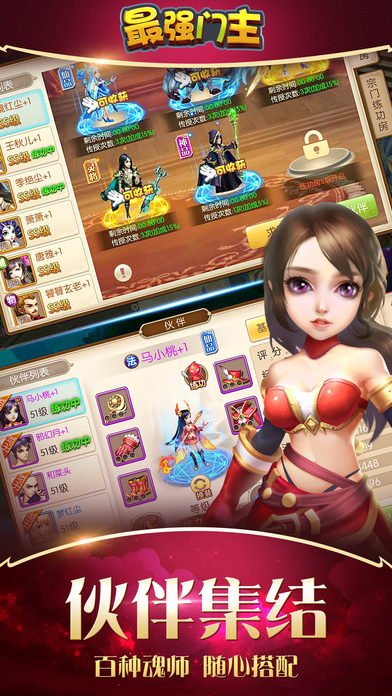 《最强门主》手游是由唐家三少正版同名小说授权制作的MMO回合制手游。游戏伙伴系统可以让玩家可在游戏中与各位角色邂逅相遇,并肩作战,体验小说中最刺激的剧情片段。挑战封号之路可以不断提升你的魂师称呼,获得强力的魂环魂骨,提升你的魂力等级,在这里,你就是主人公,你就是霍雨浩,一路前进,成为凌驾天地之上的极限斗罗。