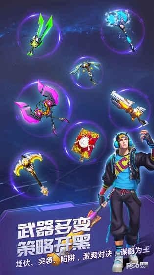 游戏拥有近三十种特色鲜明的武器,上百个酷炫华丽的技能。你可以使用龙牙火铳、射日神弓等强力DPS武器杀出重围,也可以装备洪荒狼牙、幽海铁锚等近战神器充当开路先锋。丰富武器搭配花式道具,潜伏突袭、陷阱阴人、连招Combo,杀敌套路千变万化!