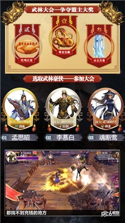 武林之中狼烟四起,各路帮会你争我斗,要想在芸芸众生中脱颖而出,帮会争霸赛是你最好的选择。一帮之主可以带领你的追随者们与敌对帮会展开厮杀,抢夺战旗,获得积分,不争个你死我活誓不罢休。
