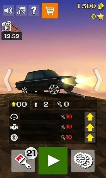 不停地旅行,不停地冒险,赚取金币购买新车,并收集零件和升级您的车辆。