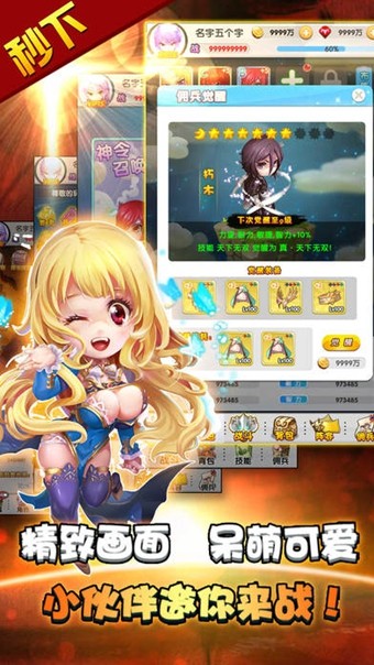 十万个小伙伴百度版是一款卡牌放置手游,游戏画风Q萌可爱,海量活动、多重副本,体验不一样的乐趣,更有多种关卡和海量BOSS等你来挑战,快来下载吧!