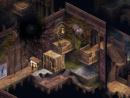 《空中楼阁触屏版》(Pavilion: Touch Edition)的最大卖点就是早前宣传的“第四人称”解谜玩法,如果你已经厌倦了一般的解谜游戏,不妨来感受下所谓的“第四人称”解谜。 游戏称之为“第四人称”解谜,是因为游戏中的这位人物主角你并不能直接控制他所有的行动,并且游戏也没有任何文字语音资料提示,游戏中的人物会在平常状态下自行移动,至火光处则会自动停止,你只能通过触屏点击与周围的环境进行不断地交互探索,看看会有什么发现,通过改变环境来触发人物的行动,以此引导人物进行解谜。如此的玩法设计理念还是相当新颖的,之前也有不少解谜游戏如《梦游者》(Back to Bed)等都有这种改变环境影响人物行动的解谜玩法,不过明显的看来本作更为复杂具有难度。