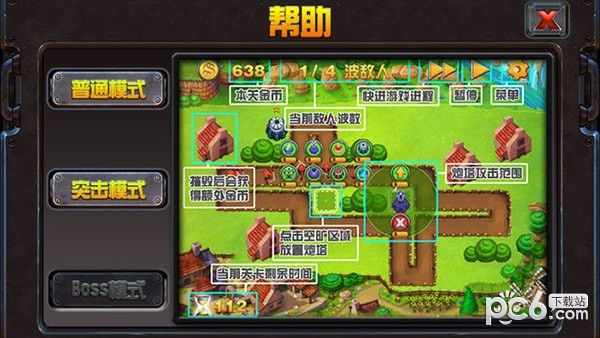 精密布局、多张地图,强力炮塔防守,群攻、迟钝、闪电、燃烧、全新英雄、技能大显神威!