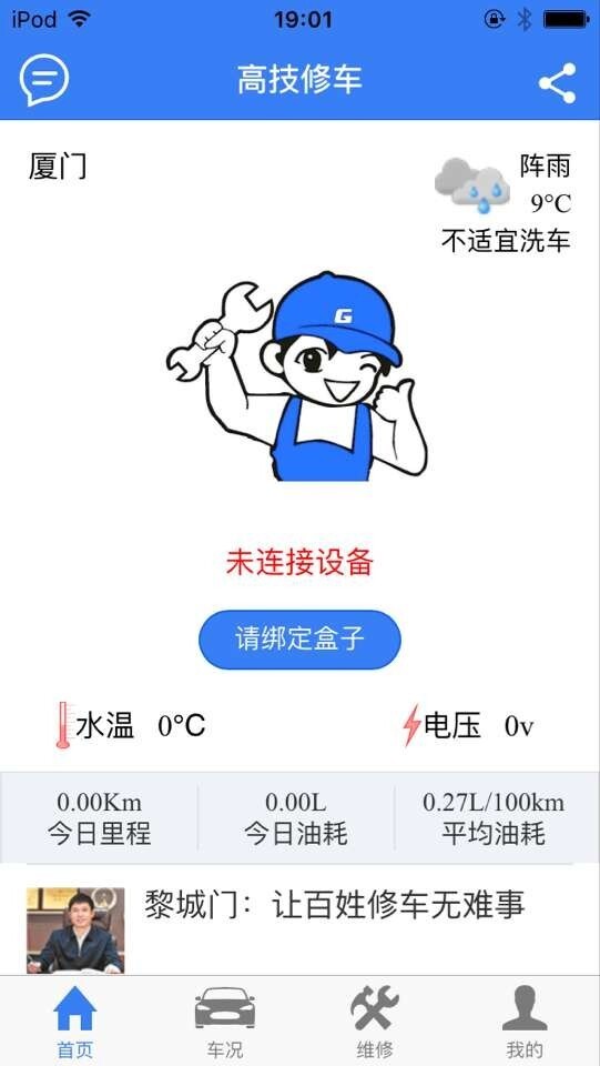 安装高技修车app后,通过蓝牙与安装在汽车车载诊断接口上的高技盒子连接,就可以读取到汽车行车电脑的数据,帮助您了解汽车油耗、改进驾驶习惯,同时高技修车app还可以及时掌握汽车各系统的健康状况。当汽车出现故障时,通过高技修车app您可以直接预约维修,自由选择技师给爱车服务,选购性价比高的汽车配件。