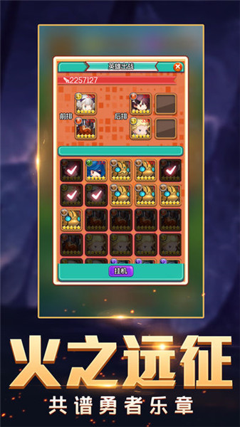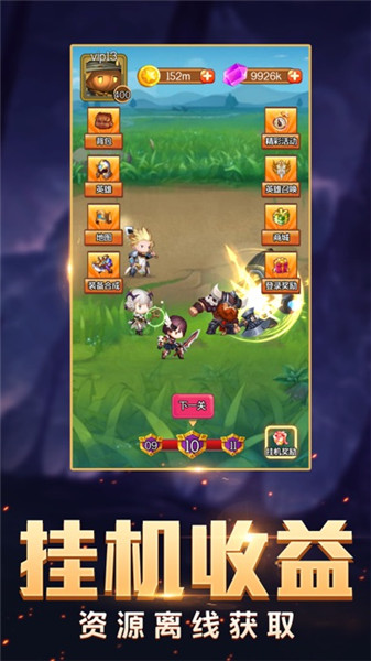 2、高度可玩的远征系统招募英雄组成自己的军团,带领勇敢的战士开始征程。