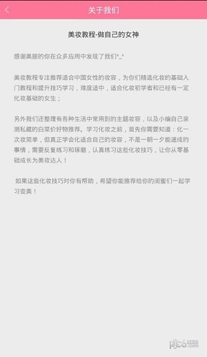 app是一款专注于化妆知识学习的移动平台。app拥有各种详细的化妆方法为你提供,助你快速成为化妆达人,同时还有海量教学视频供你随时学习,通过app,学习化妆更方便。