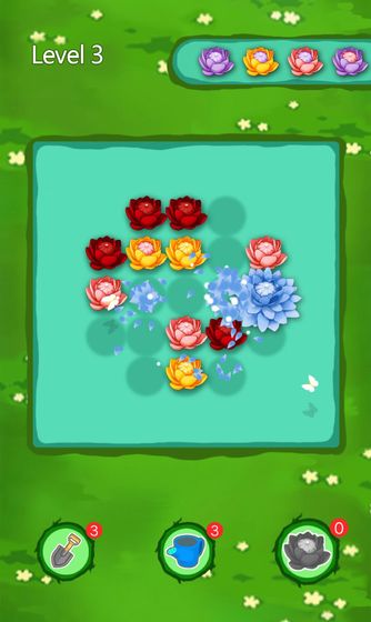3、相同且相连的鲜花时,将自动创建和删除新的鲜花。