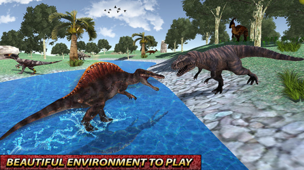 3、游戏中有20多种不同类型的恐龙等着你去杀戮,每种恐龙对你的伤害都不一样,看到霸王龙就跑吧。