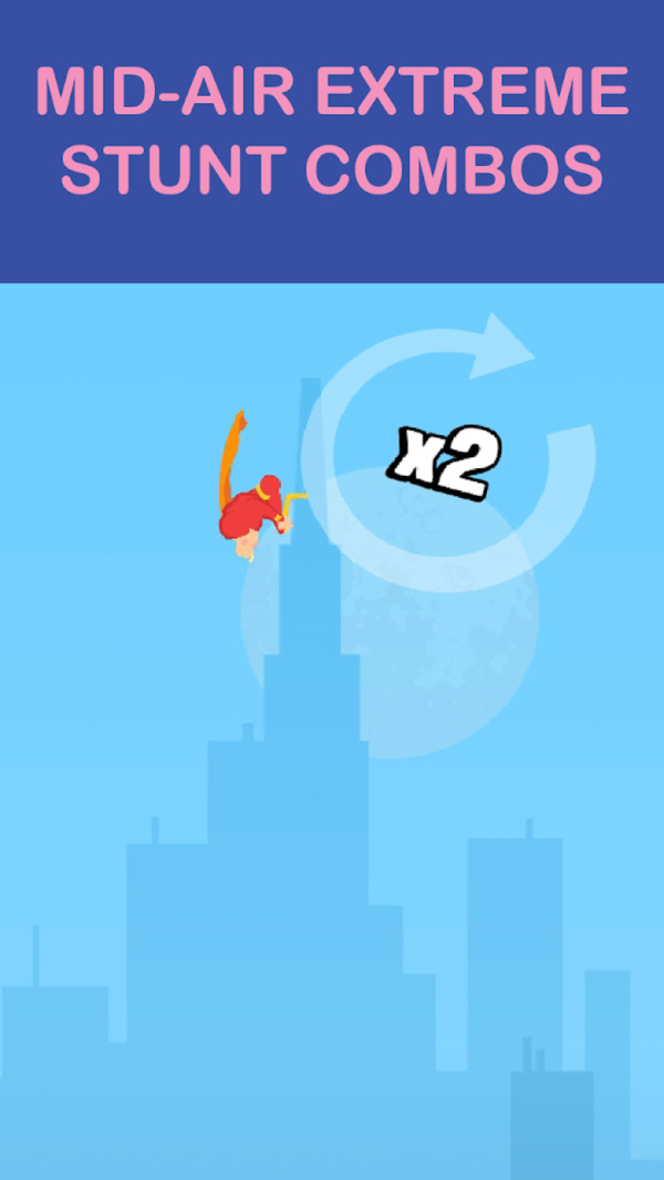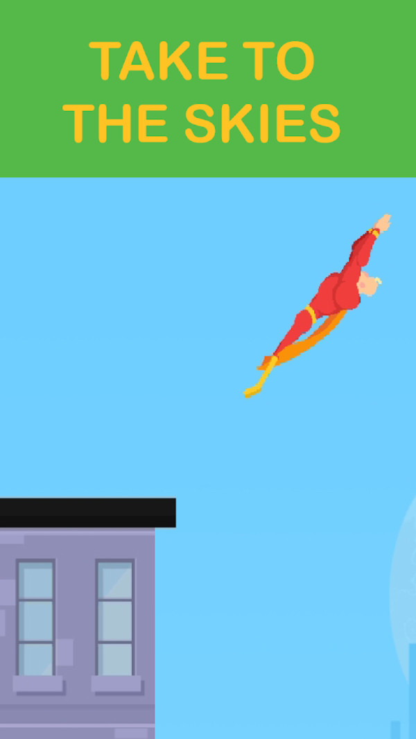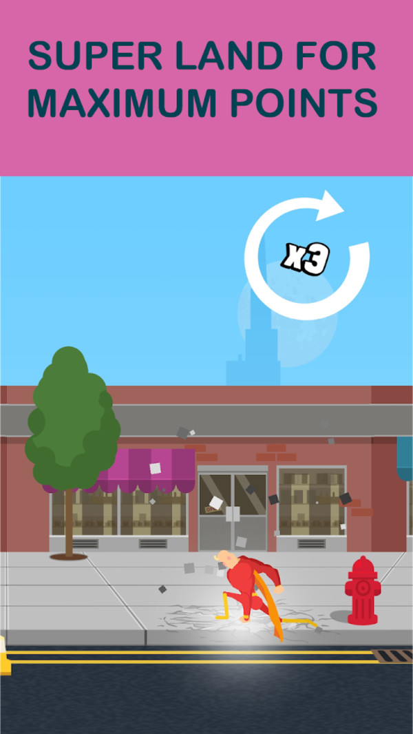 翻转英雄是一款休闲娱乐的翻转游戏。游戏采用小清新的简约画风,玩家在游戏中控制超人角色进行不断的翻滚,翻滚的圈数与你跳落的高度和姿势有关,尽可能多的进行翻滚吧!