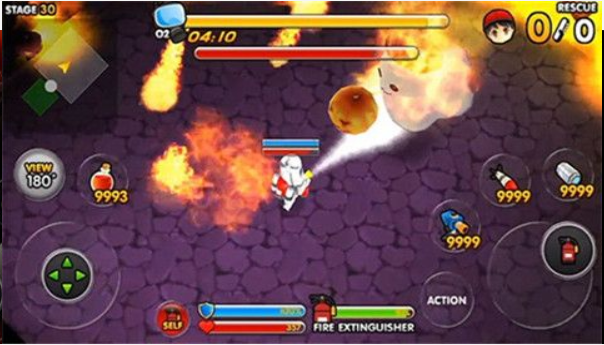 扮演一名英勇无畏的消防员,利用火箭、火焰喷枪、大水桶等道具,在火灾,烟雾,爆炸的环境之中灭火。