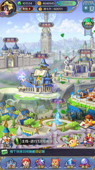 目前一共为3个年龄段,设计了近三十套服装搭配。停为了丰富战斗养成策略和组队配合,我们还设计了剑术和魔法方向的6大技能系别。目前版本还提供了铁匠铺、餐厅、炼金坊、水果店四种截然不同的挂机和手动打工玩法。