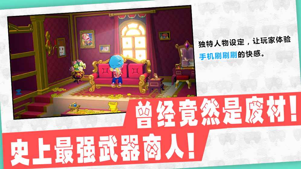 这里有独一无二的武器营销玩法,主角锻造所有的武器均可以用来战斗或者售卖。我们需要合理分配战斗使用的武器和售卖的武器来使我们不停的变强。如何成为钱神不但要风骚的操作更需要有一颗聪明的大脑。