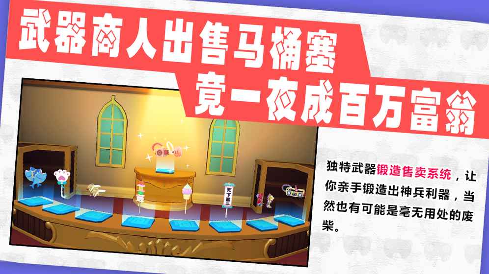 你经营的武器商店,可以锻造出各种奇形怪状的武器,它们不但是你的武器还是你店铺的商品,合理分配装备和售卖的武器是不停变强的策略。