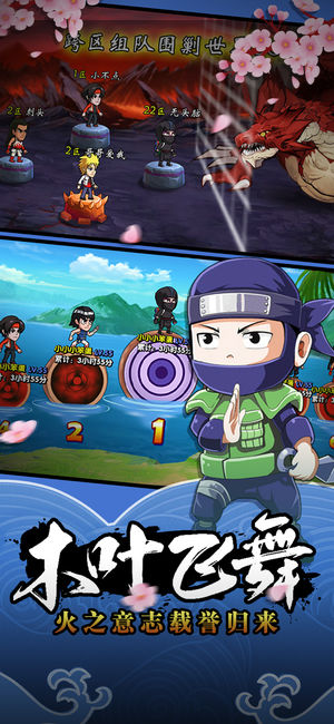 2、玩家可以参与各种互动玩法,收集数百种不同属性的忍者。