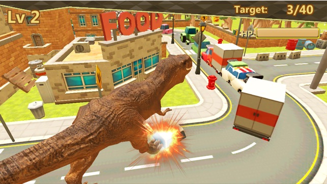 1、真实模拟的小镇环境,控制恐龙进行无尽的破坏吧!