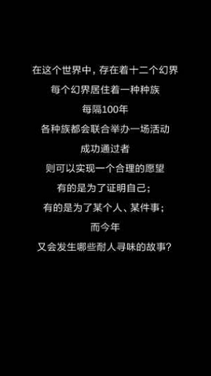 这个世界中存在着,每个幻界居住着一种种族,每隔百年,各种族会联合举办一场活动,成功通过者,则可以实现一个合理的愿望。