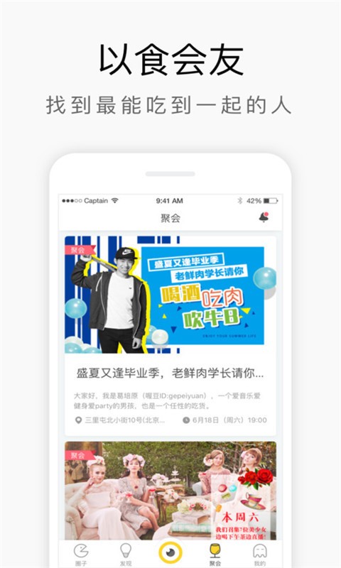 “以食会友”是喔豆的重要功能,丰富的线上线下活动,带你找到志趣相投口味相同的饭友。