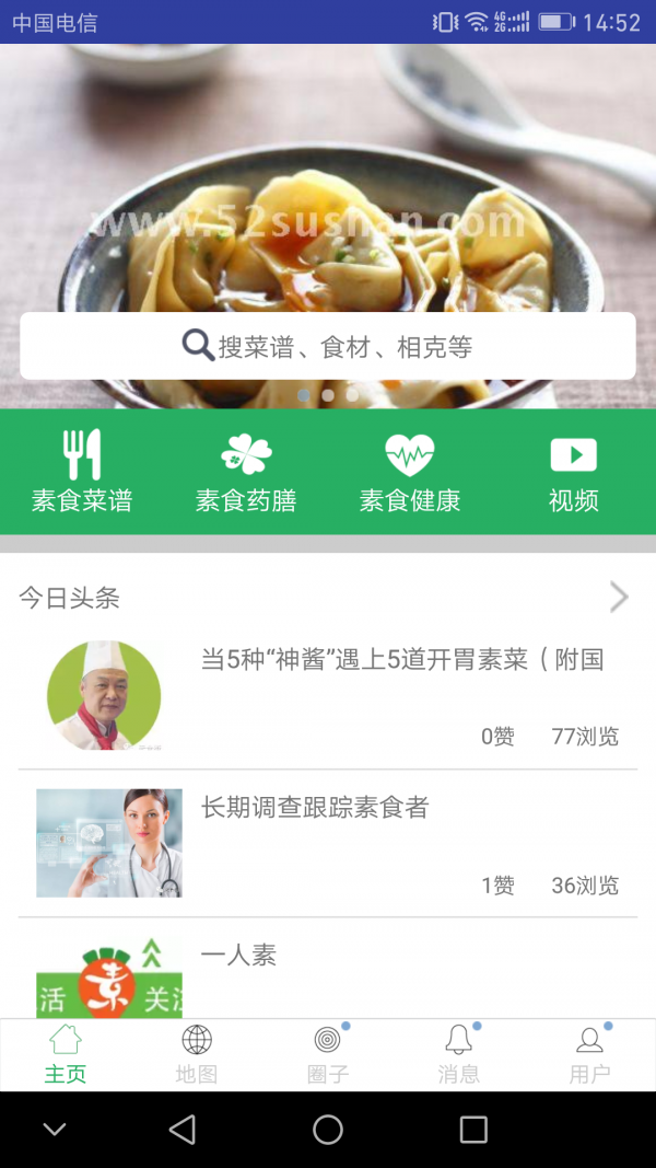 52素膳app是一款美食推荐应用,52素膳app为用户提供一个素食养生平台,让用户可以通过软件了解更多素食美食信息,为用户享受美食提供便利。
