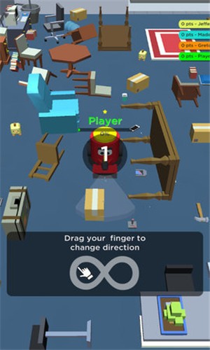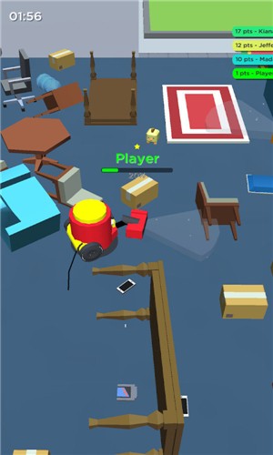 在狭小的空间中尽可能的收集更多的金币,不断解锁更多道具和装备,让自己的吸尘器变得越来越大。