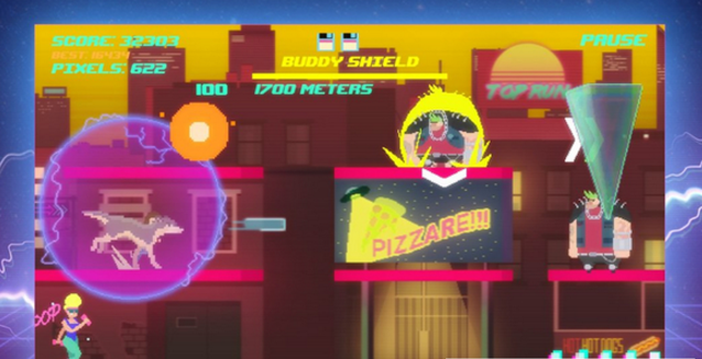 游戏采用复古画风,霓虹风格色彩鲜亮