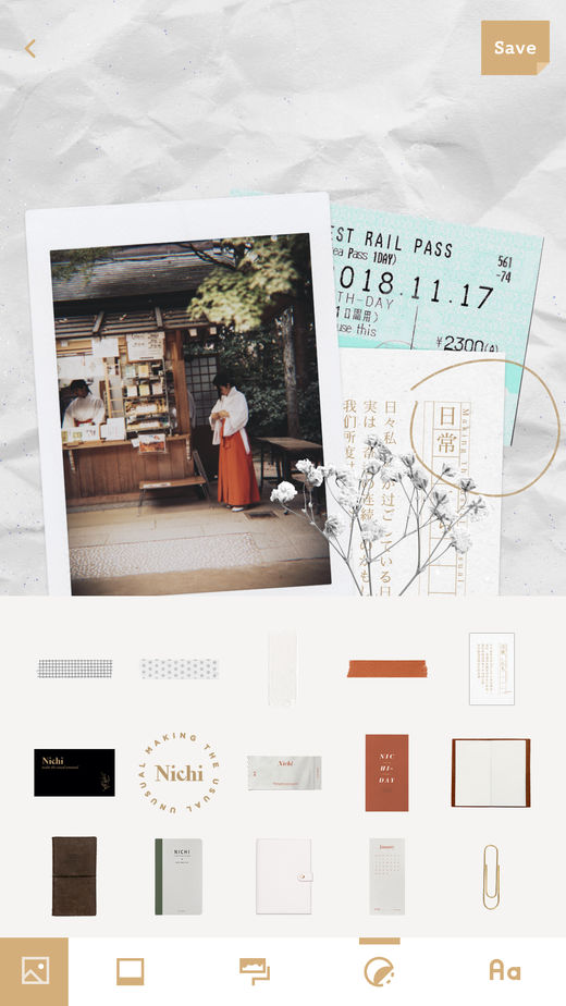 「NICHI」一词来源于日语的「日」,我们希望帮助大家用手工拼贴的形式记录「日常」。珍惜每一份细节和情绪,感知时间的奇迹。