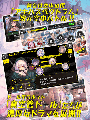 真空管人偶是由日本SME(SonyMusicEntertainment)公司推出的新体验类角色扮演游戏,游戏的舞台设定在一个反重力科学十分发达的立体都市「魔法町」。在这座城市中,人们与象征都市科学发展成就的人偶型机器人真空管人偶一起生存。玩家在游戏中可以使用各种零件自由组装出专属自己的美少女人偶,即使是开发人偶最基础的主板和CPU都拥有多种样式,而且每个人偶都可以自定义各种能力,玩家可以按照自己的趣味组装出独具魅力的DOLL,在这3D反重力立体都市中享受没有空间限制的战斗。