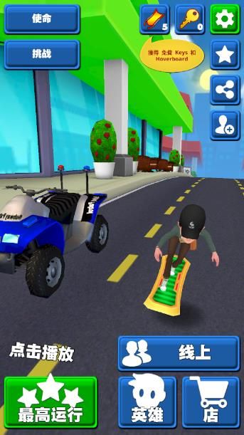 在跑酷的过程中会有金币或钻石,可以收集起来,给自己购买更加新进代步工具,或者提升自己的体力。