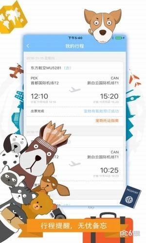 app为您提供更便利的方式去查询可随机托运宠物的航班,app全程为您代办宠物有氧舱预订服务,让携带宠物像托运一件行李一样简单!
