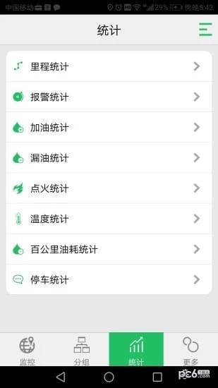 统计(里程报表、报警统计、加油统计、漏油统计、百公里油耗统计)、