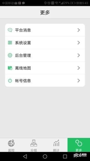 更多(平台消息、发布公告、系统设置、后台管理、离线地图、注销账号) 四个功能模块组成。