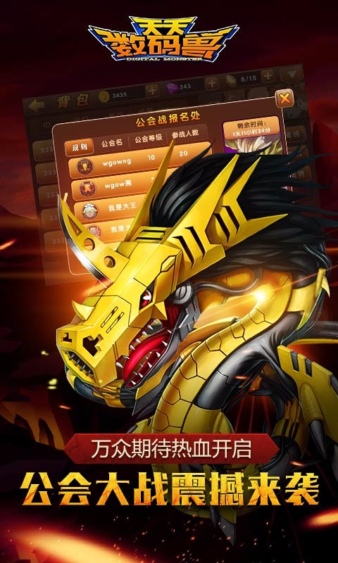 《天天数码兽》是一款由超人气动画,数码宝贝100%复刻,亿万粉丝童年回忆,被选中的孩子们,游戏拥有百款3D精模萌宠,亚古兽、加布兽、天女兽、天使兽再次齐聚,等你召唤!多线程进化、世界BOSS、天使许愿、各种独创玩法乐不停。