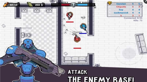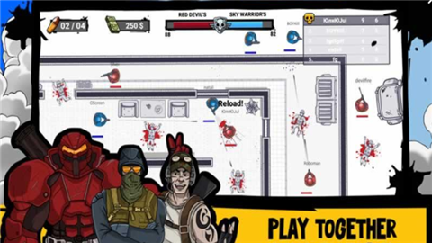 游戏里玩家需要扮演红蓝队伍之一,和队友紧密配合击毙敌军所有敌人。并且可以搜刮房间里的金钱用来购买更好的武器设备,喜欢接受挑战的话就快来下载吧!